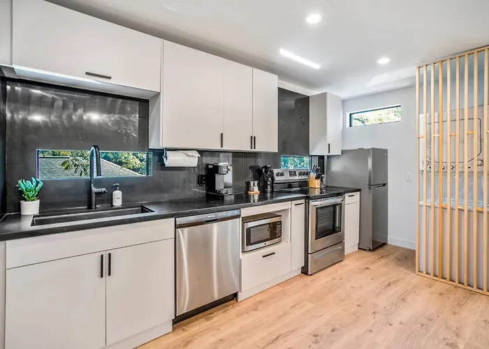Il Stylish East End Studio For Comfort & Wellness è dotato di un angolo cottura attrezzato dove gli ospiti possono cucinare i propri piatti. La stazione degli autobus Magnolia Park Transit Center è a 650 metri.